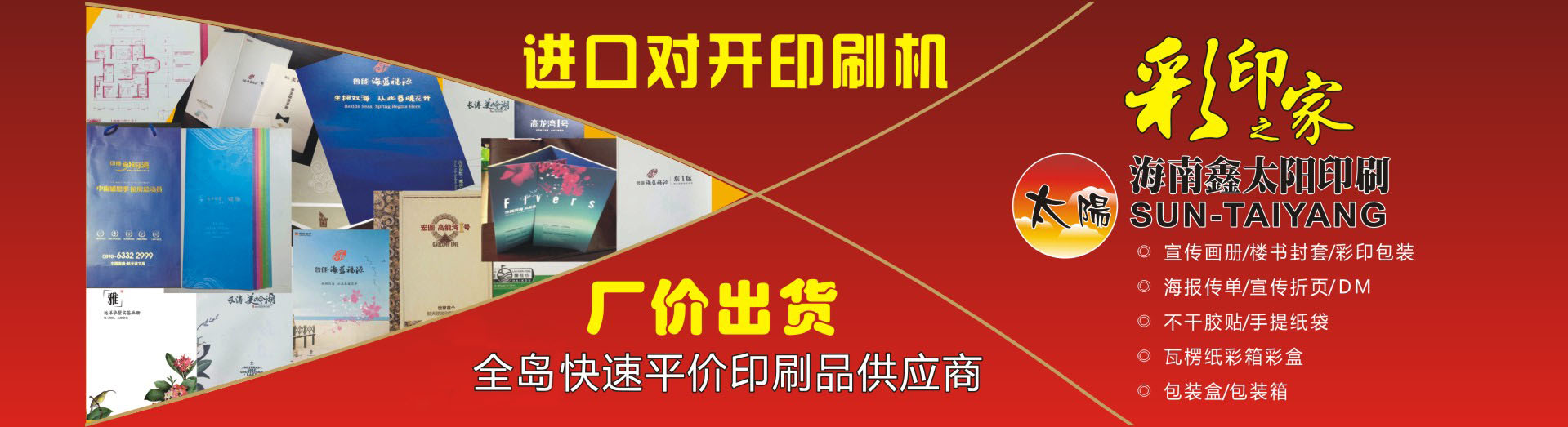 海南鑫太陽印刷業(yè)有限公司成立于2002年,主要從事生產(chǎn)海報畫冊、傳單簡介、精品包裝、掛歷臺歷、不干膠貼、手提紙袋、瓦楞紙包裝箱和彩箱紙盒等,公司有日本、德國等對開及四開高速彩色印刷機(jī)、自動膠裝機(jī)、自動鎖線機(jī)、自動復(fù)膜機(jī)等先進(jìn)的自動化設(shè)備,業(yè)務(wù)涉及商業(yè)、地產(chǎn)、水產(chǎn)、食品、農(nóng)林、藥品、化工、航空等行業(yè)的彩印包裝及宣傳印刷品。我公司另外還設(shè)有紙箱包裝廠,可以更好地為客戶配套生產(chǎn)各種檔次級別的瓦楞紙箱彩盒、普通紙箱紙盒、精裝禮盒等大型產(chǎn)品包裝,產(chǎn)品范圍包括花炮箱、飲料箱、食品箱、魚箱、花箱等。
